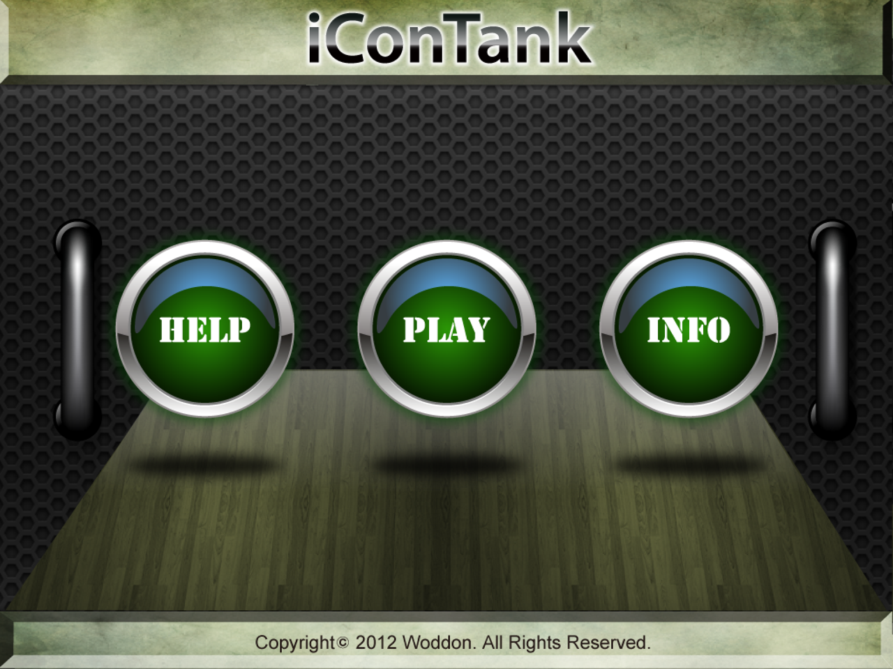 Nun kann die App gestartet werden, die zwar nicht deutsch lokalisiert, aber trotzdem einfach bedienbar ist. Nach dem Startbildschirm kann man sich über den Help-Button eine englischsprachige Anleitung anzeigen lassen, über den Info-Button sowohl die Version und den eigentlichen Hersteller der App und der Panzer erfahren (Woddon bietet auch eine Hilfeseite im Internet an) oder über den Play-Button die Action starten.