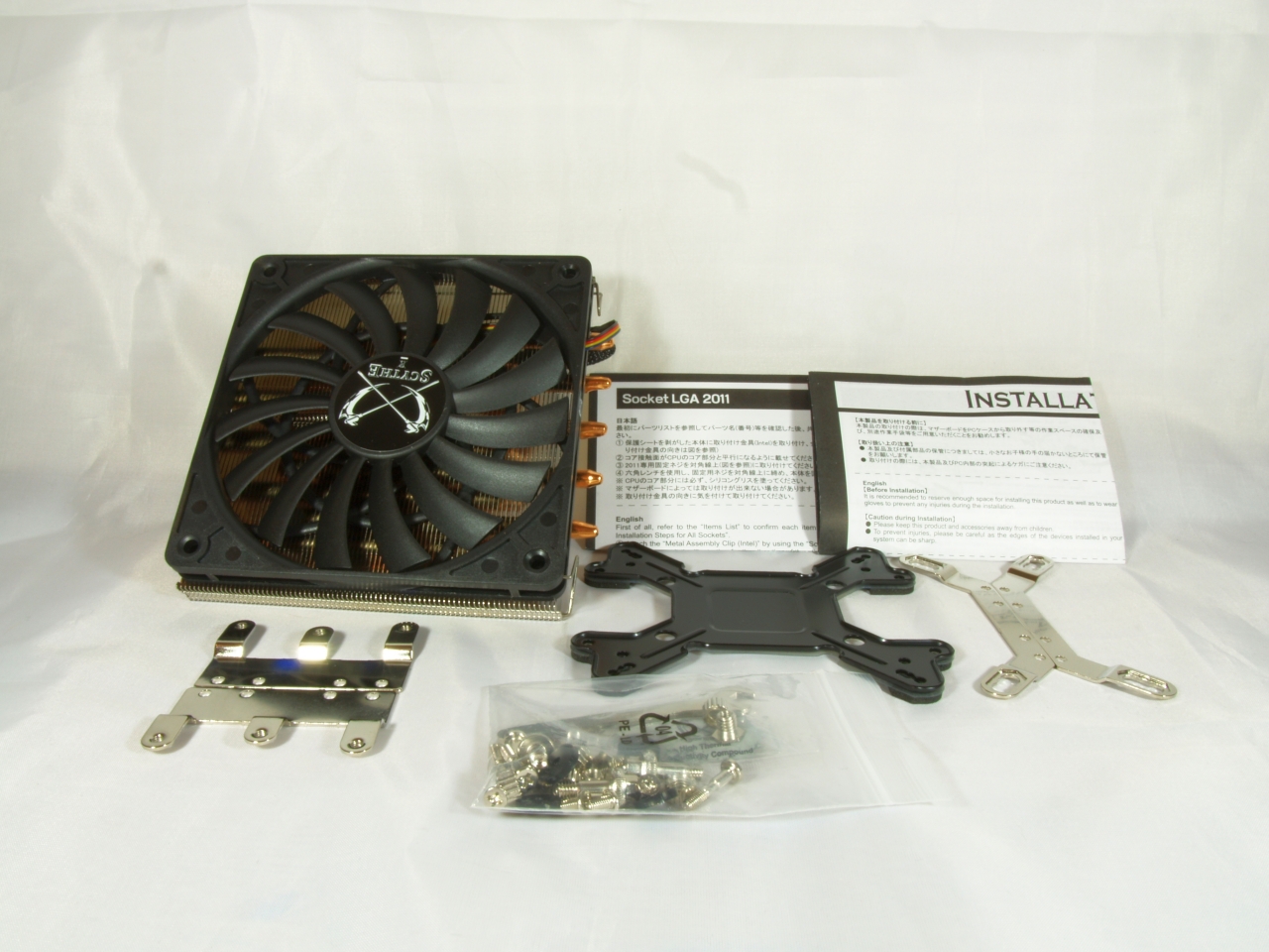 Zur Montage muss eine Backplate an das Rückseite des Mainboards montiert werden. Dies geschieht nach einem bewährten Prinzip von Scythe, welches zum Beispiel auch beim Mugen 3 vorzufinden ist. Zwar etwas umständlich muss man letzten Endes an der Mainboard-Oberseite den Kühler auf die Schrauben setzen und von der Rückseite dann den Kühler festschrauben - aber mit etwas Geschick geht die Montage dann schnell und sicher von Hand. Trotz der umständlichen Lösung oder vielleicht gerade deswegen hält der Kühler bombenfest. Ein Verrutschen oder gar Lösen kann so voll und ganz ausgeschlossen werden.