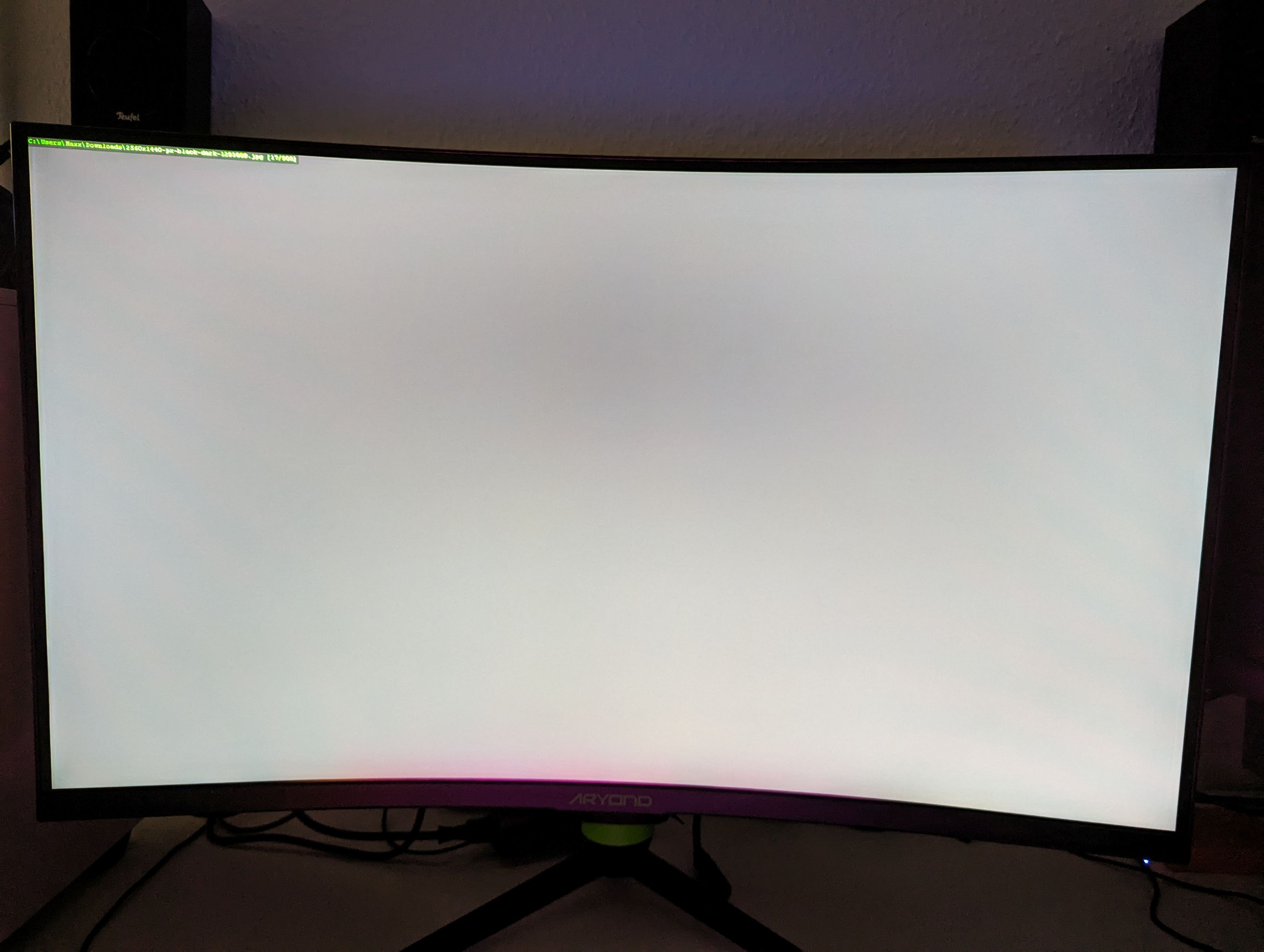 Die Ausleuchtung, hier eine längere Belichtung eines schwarzen Hintergrundes, ist in dieser Preisklasse absolut in Ordnung. Zwar sind in der Aufnahme kleinere Lichthöfe zu sehen, jedoch sind diese während der Nutzung nicht wahrnehmbar.