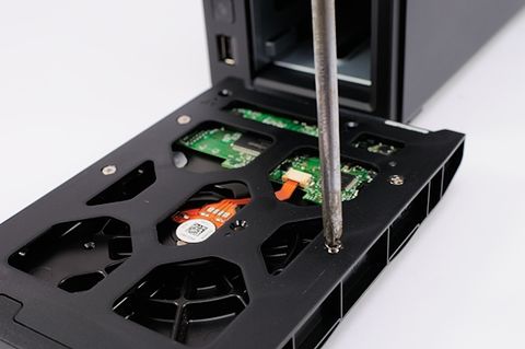 Der Einbau der Festplatten in ein Leergehäuse stellt auch für Technik-Muffel kein Problem dar. Die meisten Gehäuse verfügen über eine sogenannte „Hot-Swap“-Funktion, die ein einfaches Anschrauben der HDD an einen Einbaurahmen ermöglicht. Dafür muss lediglich der Einbaurahmen, welcher meist mit einem Klemmmechanismus befestigt ist, aus dem Gehäuse gezogen werden. Dort wird dann die Festplatte festgeschraubt und der Rahmen wieder ins Gehäuse geschoben. Wem das immer noch zu umständlich ist, der kann sich auch bei einigen Händlern seine Gehäuse-Festplatte-Wunschkonfiguration zusammenstellen und zusammenbauen lassen, sodass man einen betriebsbereiten NAS-Server nach Hause geliefert bekommt.